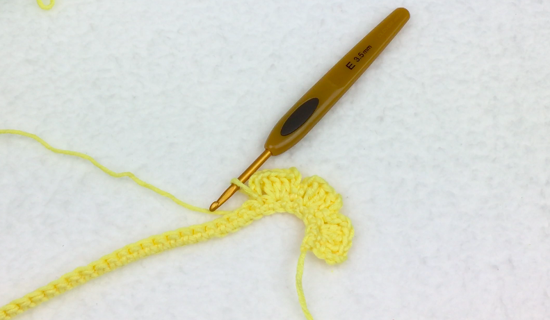 Row 2: (ch 3, 3 dc together into next stitch ch 3, sl st into the next stitch rep x2)