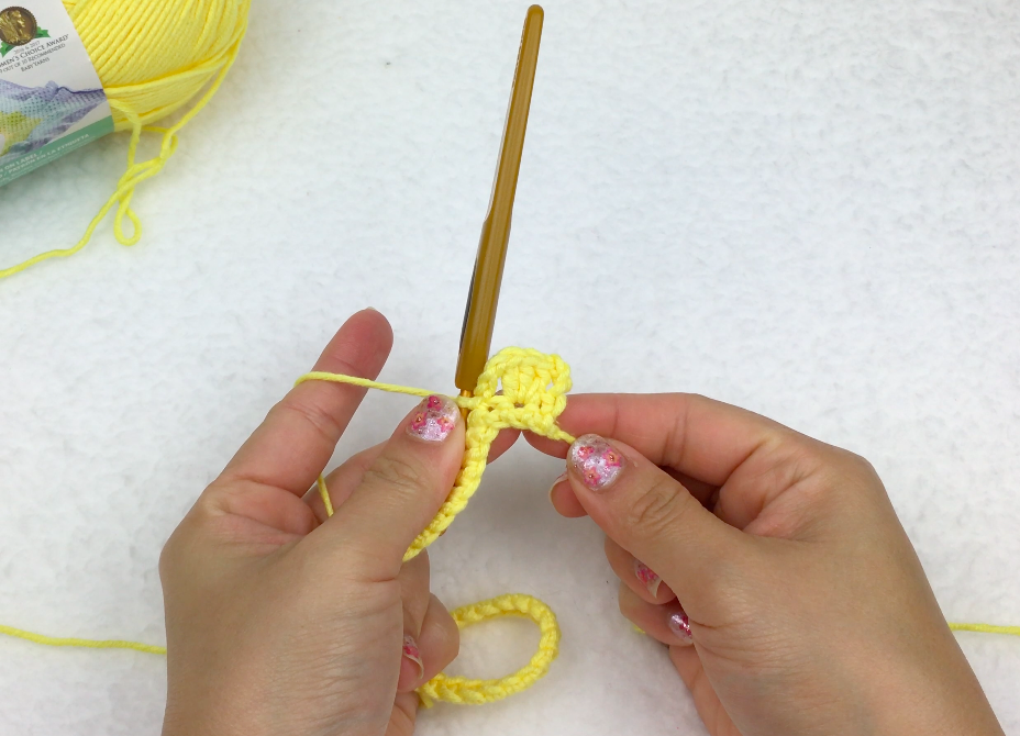 secure the rose by working on the tail back and forth through the base of the flower. Fasten off.