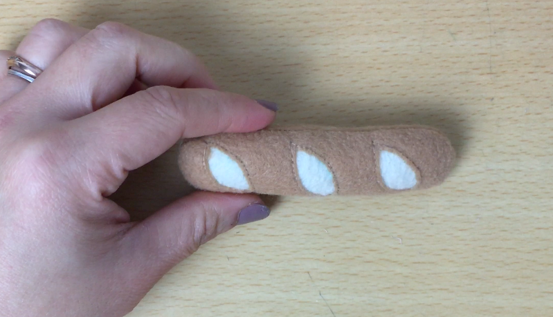 6. Turn right side out; then stuff with poly-fill and Close the opening edge using a ladder stitch, And there you have it, gluten-free, carb-free French bread.