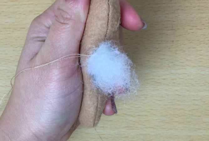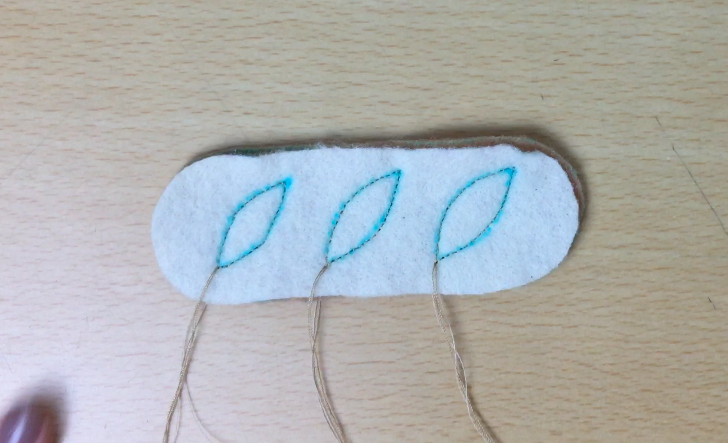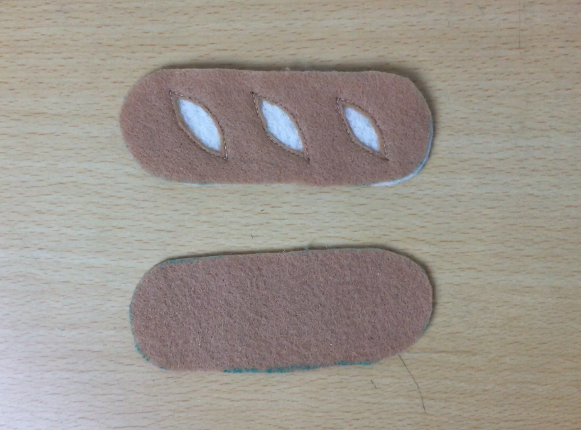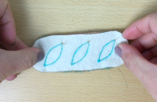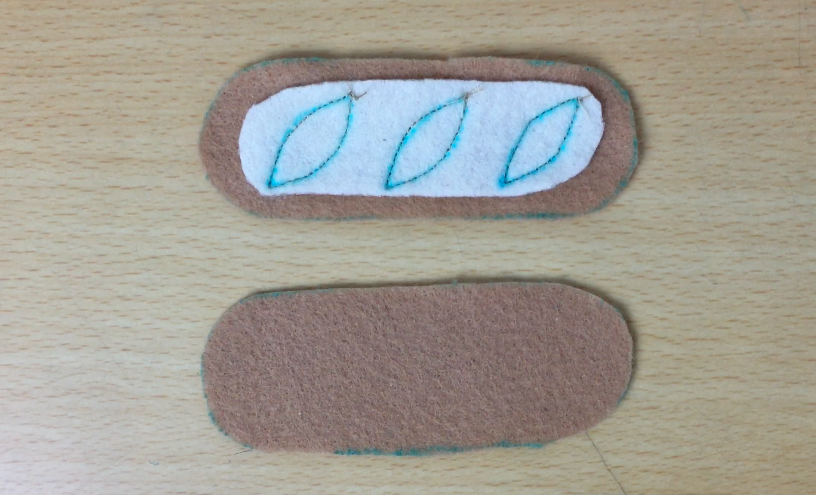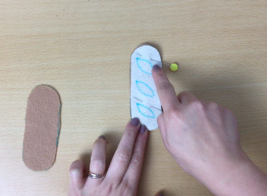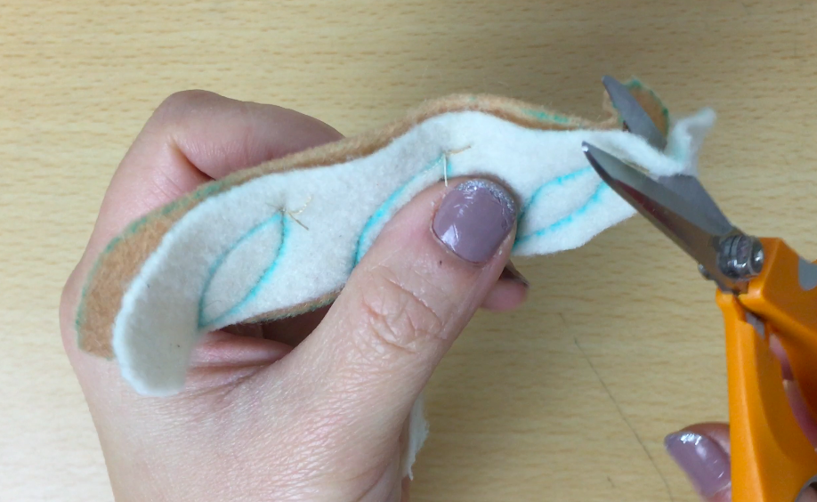 2. Pin cream felt on top of tan felt and stitch along on the marking point, (Cream color will be the inside)